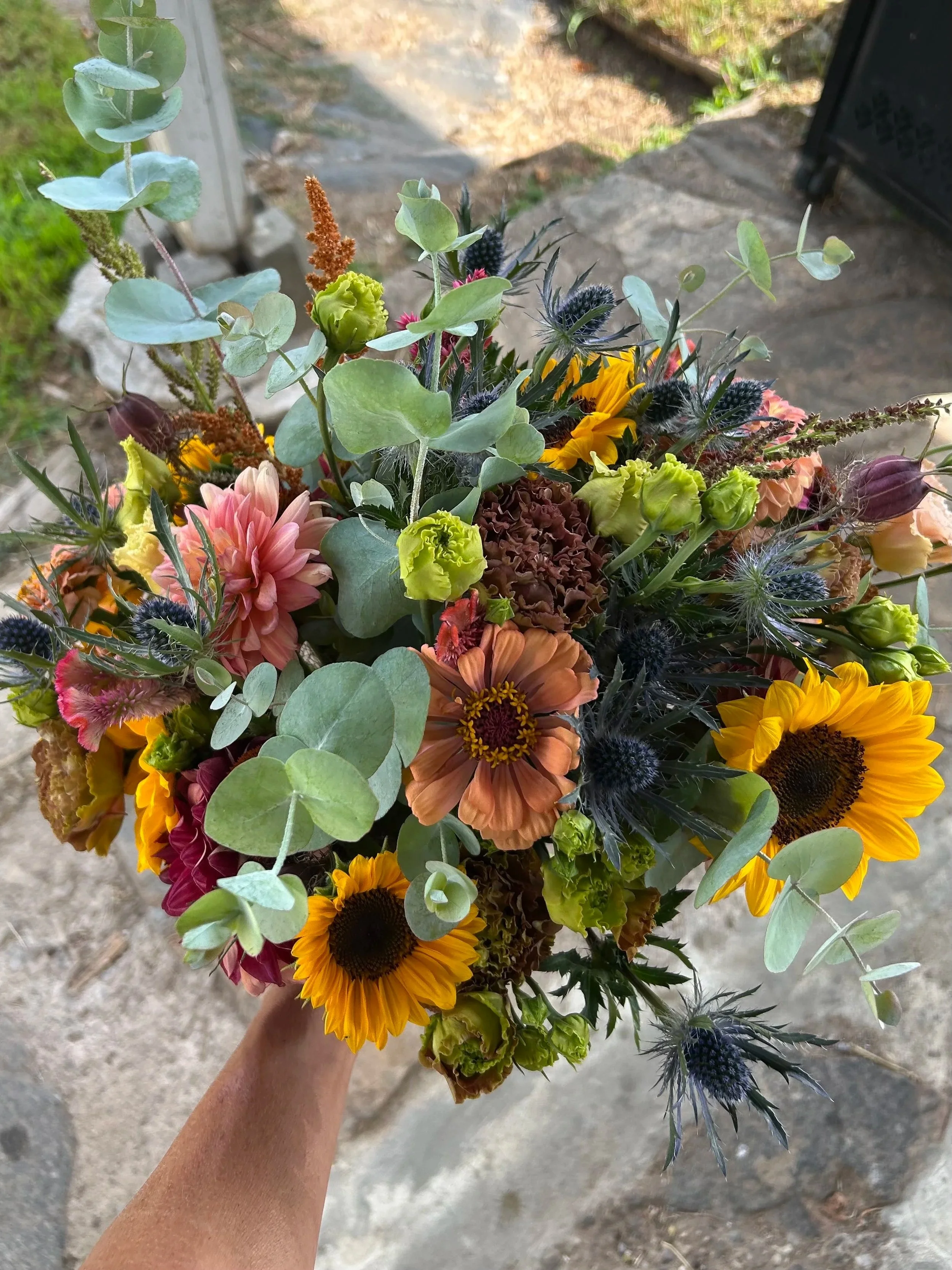 Bouquets are grower’s choice, based on what’s blooming each day. Colors and varieties change throughout the season.